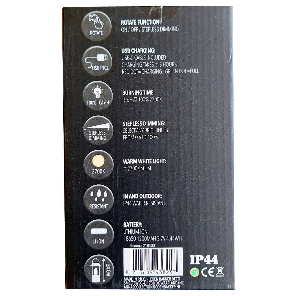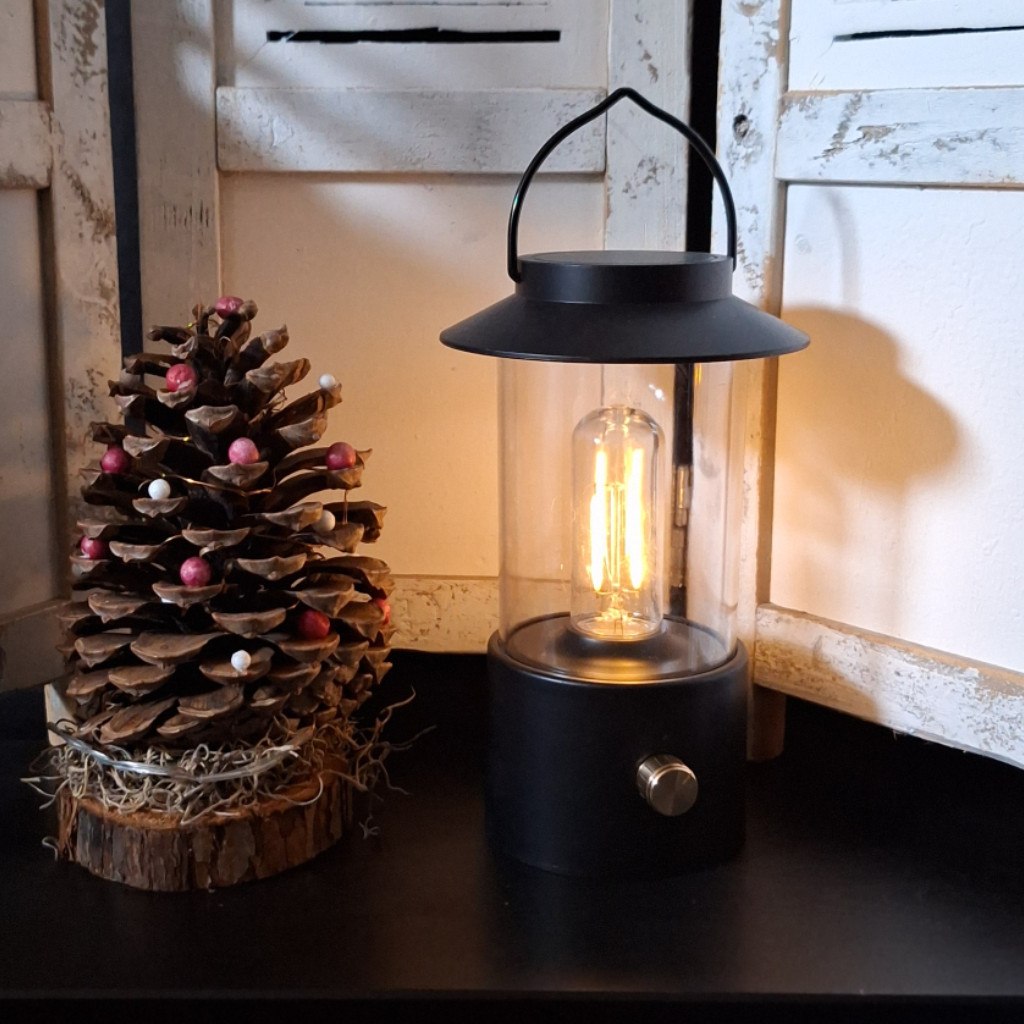 Deze portable LED lantaarn is ideaal voor op tafel tijdens een diner, in de tuin of als sfeervol nachtlampje. Een elegante en praktische toevoeging aan elk interieur of buitensetting.