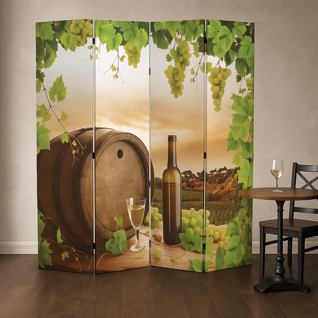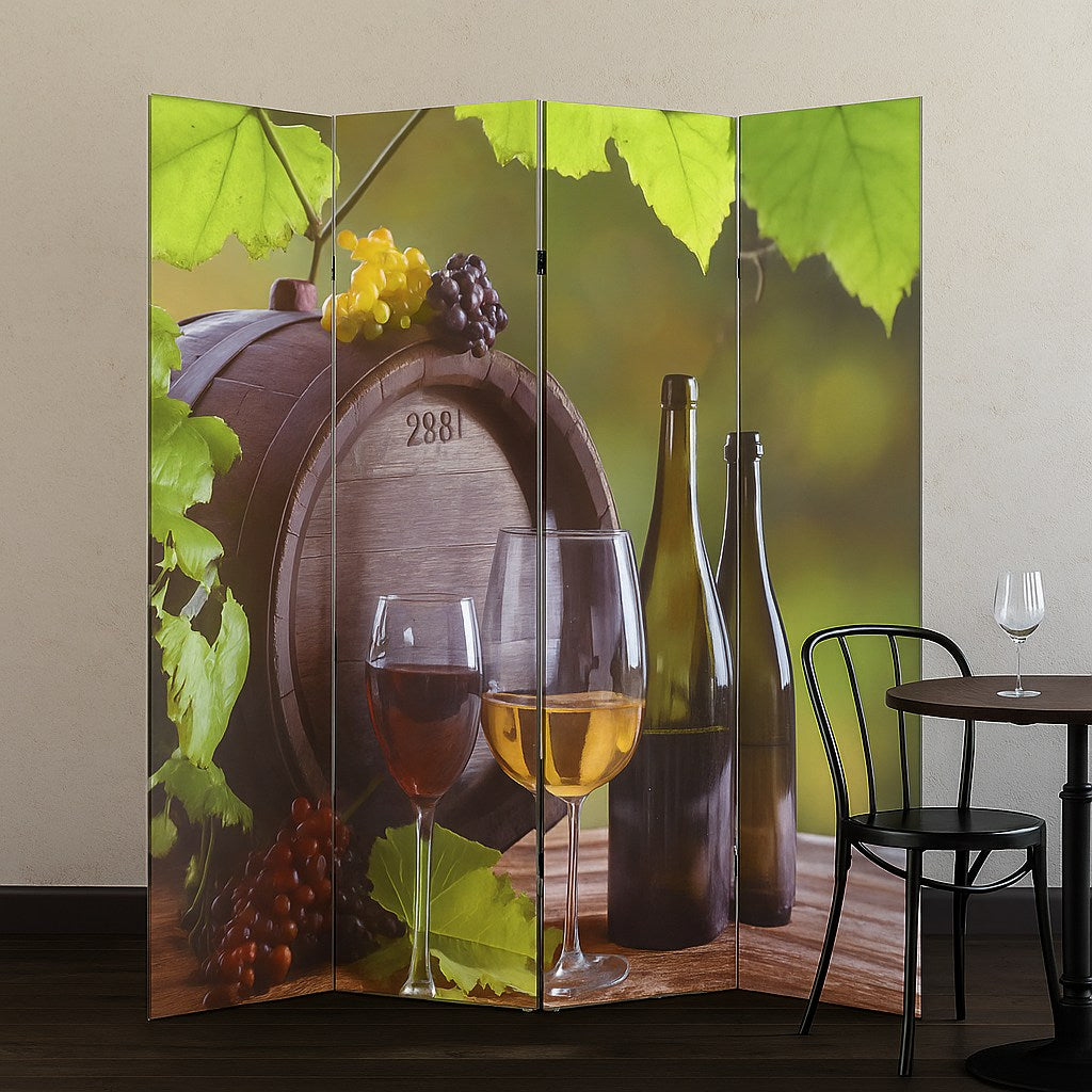 Breng karakter en warmte in je interieur met dit unieke kamerscherm met wijnvat-print. De vier panelen zijn bespannen met stevig canvasdoek en tonen aan beide zijden een prachtige, verschillende afbeelding in hoge resolutie. Een echte blikvanger die sfeer toevoegt aan elke kamer!
