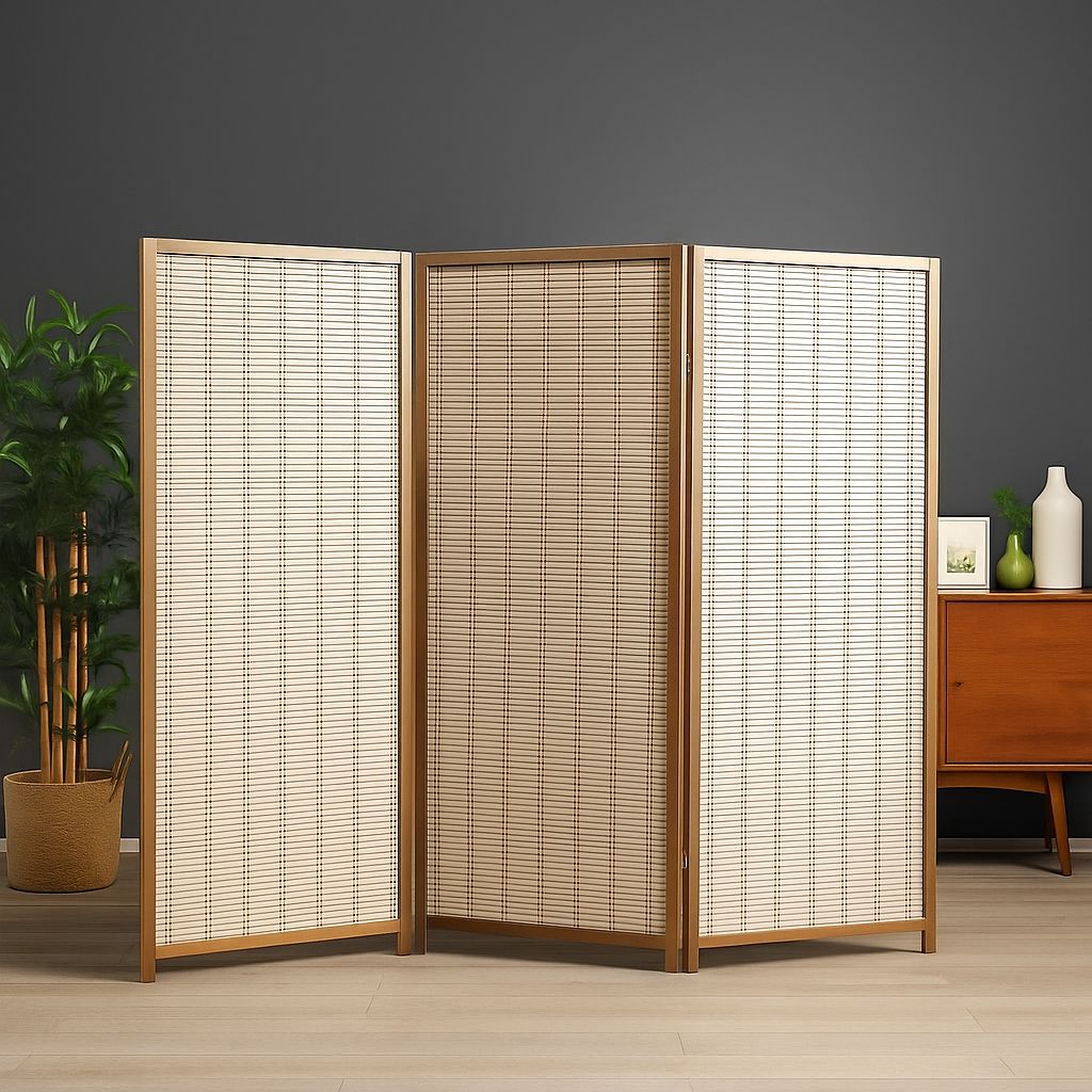 - Drie delig houten scherm - Kleur Naturel