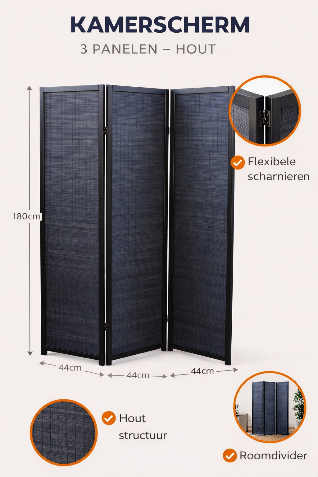 Een praktisch en stijlvol kamerscherm dat zich moeiteloos aanpast aan jouw ruimte.