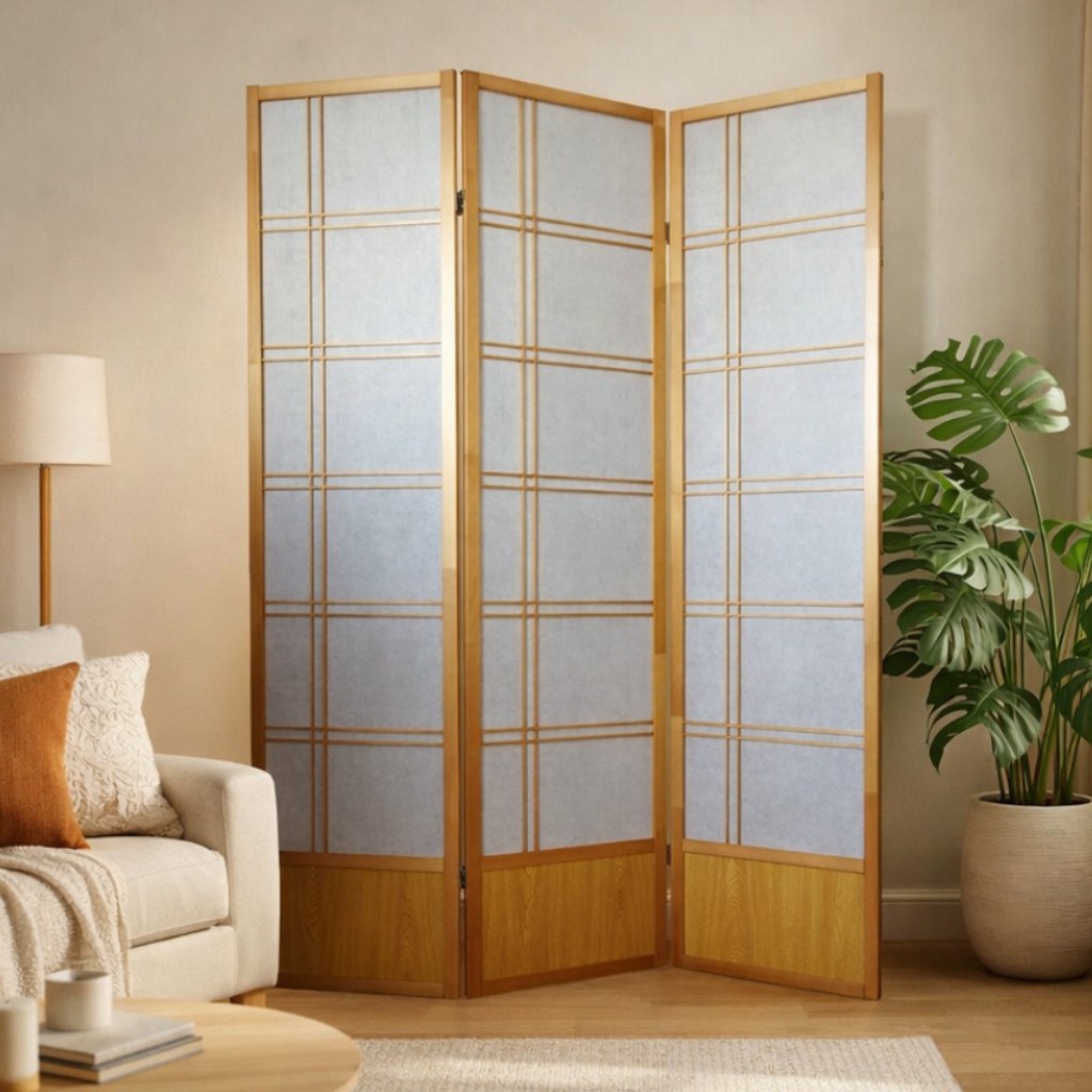 Japans Kamerscherm Naturel – 3 Panelen | Houten Shoji Stijl