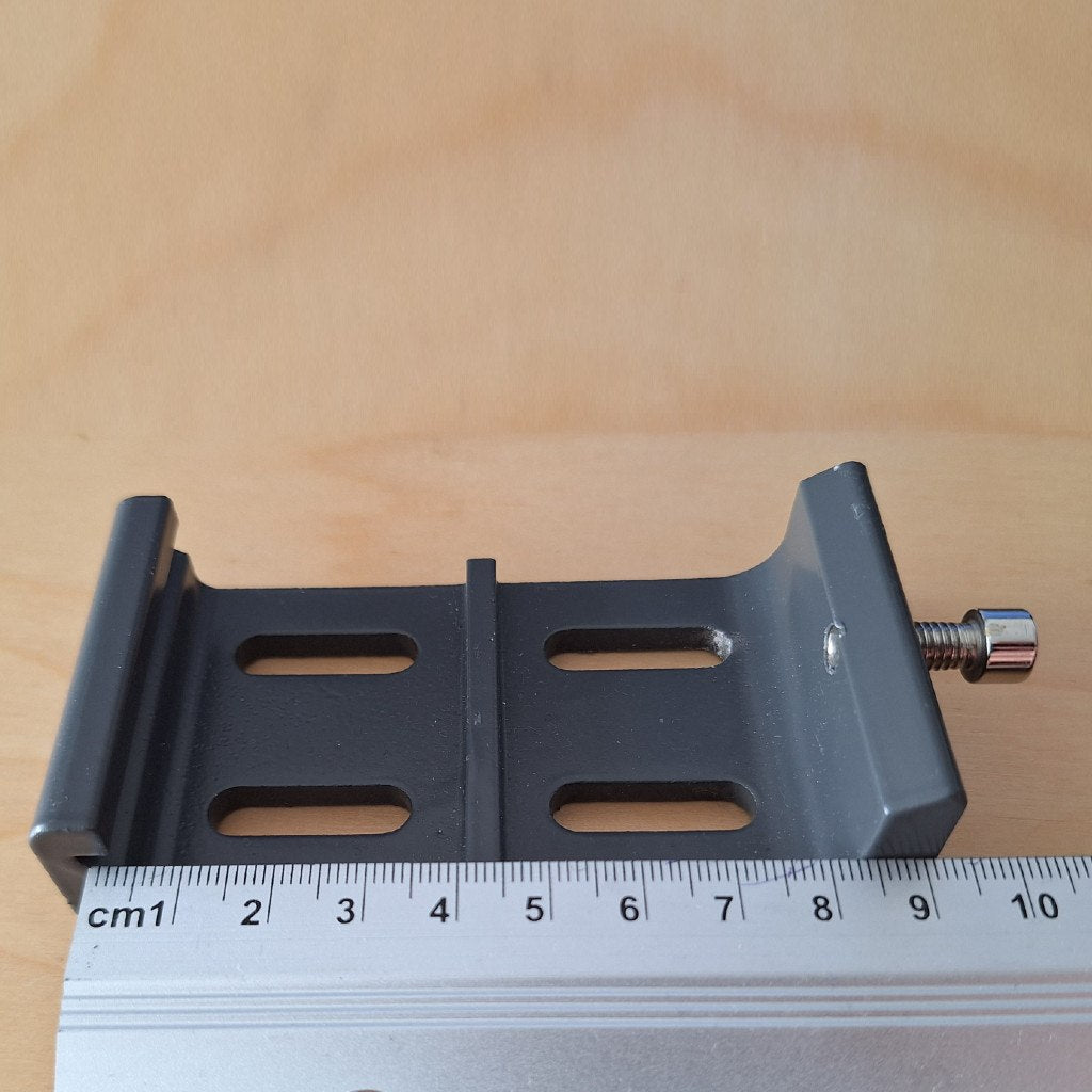 De buitenmaat van de beugels is 9,6 cm en de binnenmaat is 8 cm. Deze beugels zijn geschikt voor de uittrekbare windschermen van Canvasscherm.nl.