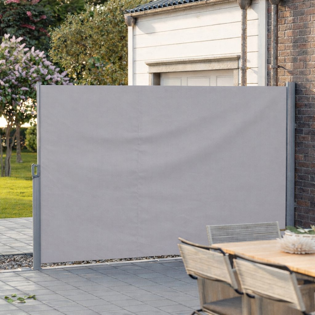 Maak van je terras, balkon of tuin een comfortabele en beschutte plek met dit uittrekbaar windscherm (180 x 350 cm). Dit oprolbare zijscherm helpt tegen inkijk, felle zon en lichte wind. Dankzij de stevige aluminium cassette en het waterafstotende doek is het scherm ideaal voor dagelijks gebruik in het buitenseizoen.
